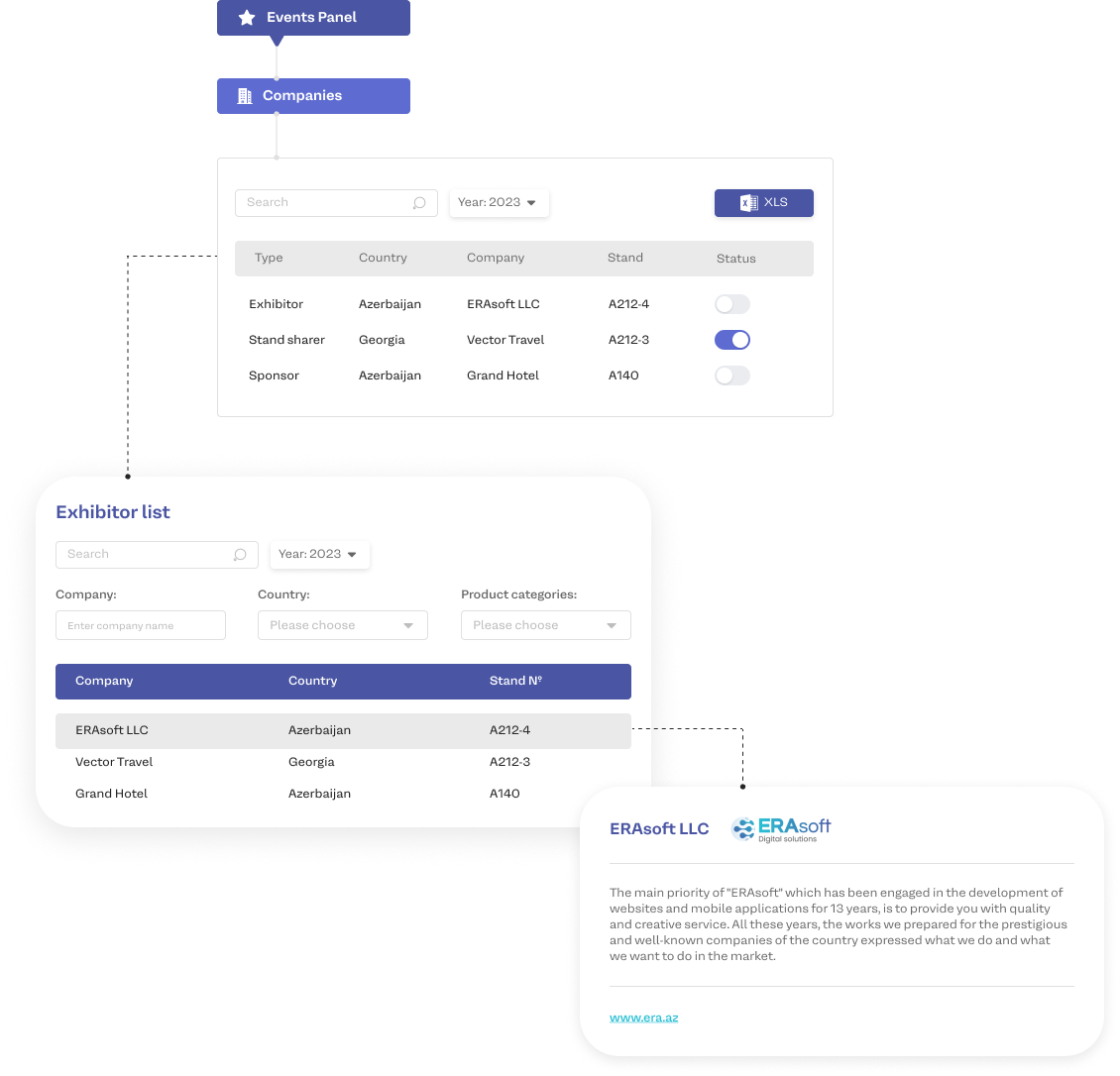 The Companies Panel simplified our exhibitor interactions. Ordering technical services was a breeze, thanks to ERA's user-friendly system. A must-have for any exhibition organizer! Alex Rodriguez, Exhibition Coordinator